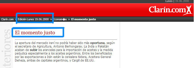 "La apertura del mercado iraní no podría ser más oportuna, según el secretario de Agricultura Antonio Berhongaray. La India y Paquistán acaban de subir los aranceles para la importación de aceites y la medida perjudica a los aceites argentinos. Entre los beneficiados por las exportaciones a Irán están la cerealera Nidera, Aceitera General Deheza, ambas de capitales argentinos, y Cargill de EE.UU."