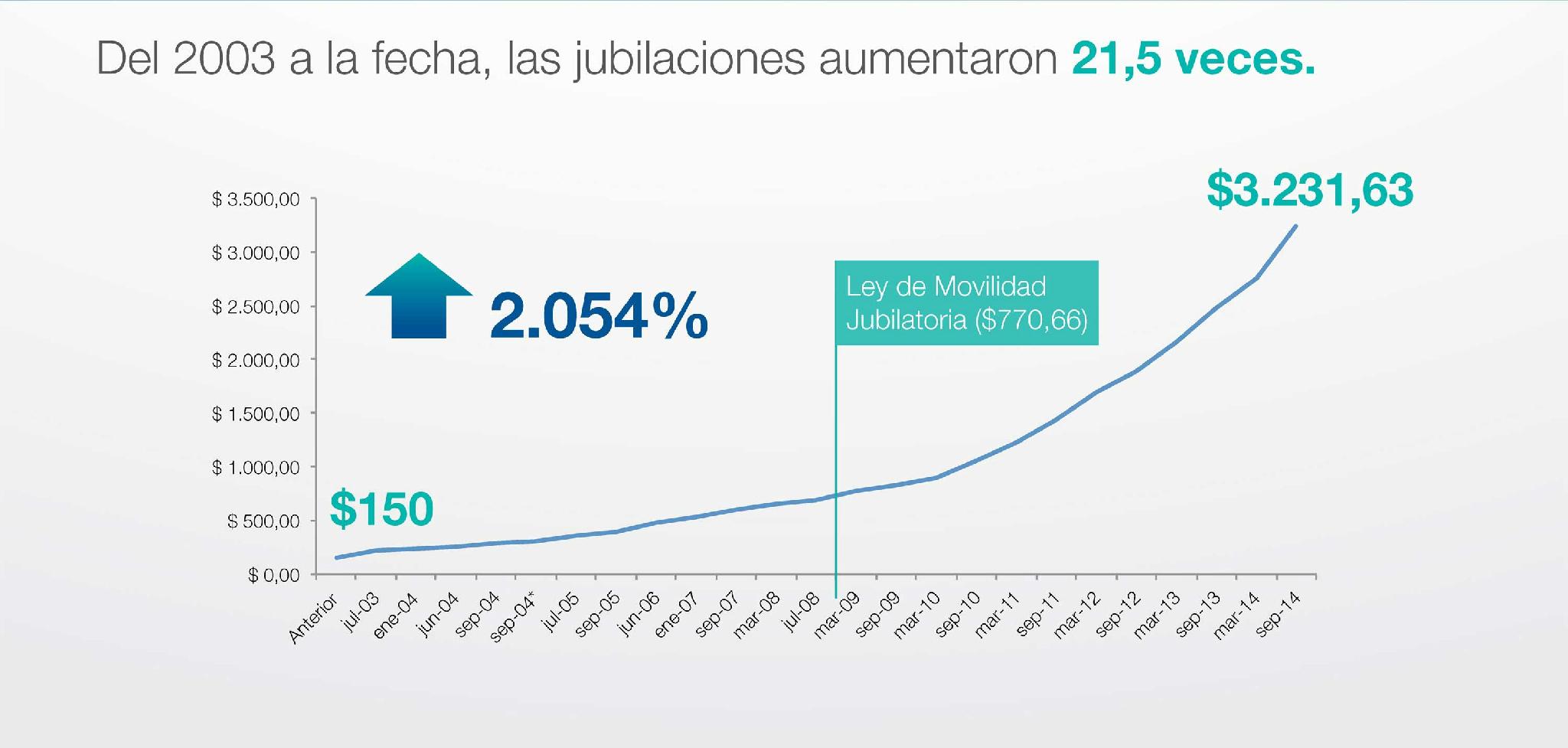 -Nos dice @diegobossio a partir del anuncio de CFK, que del 2003 a la fecha, las jubilaciones aumentaron 21,5 veces.